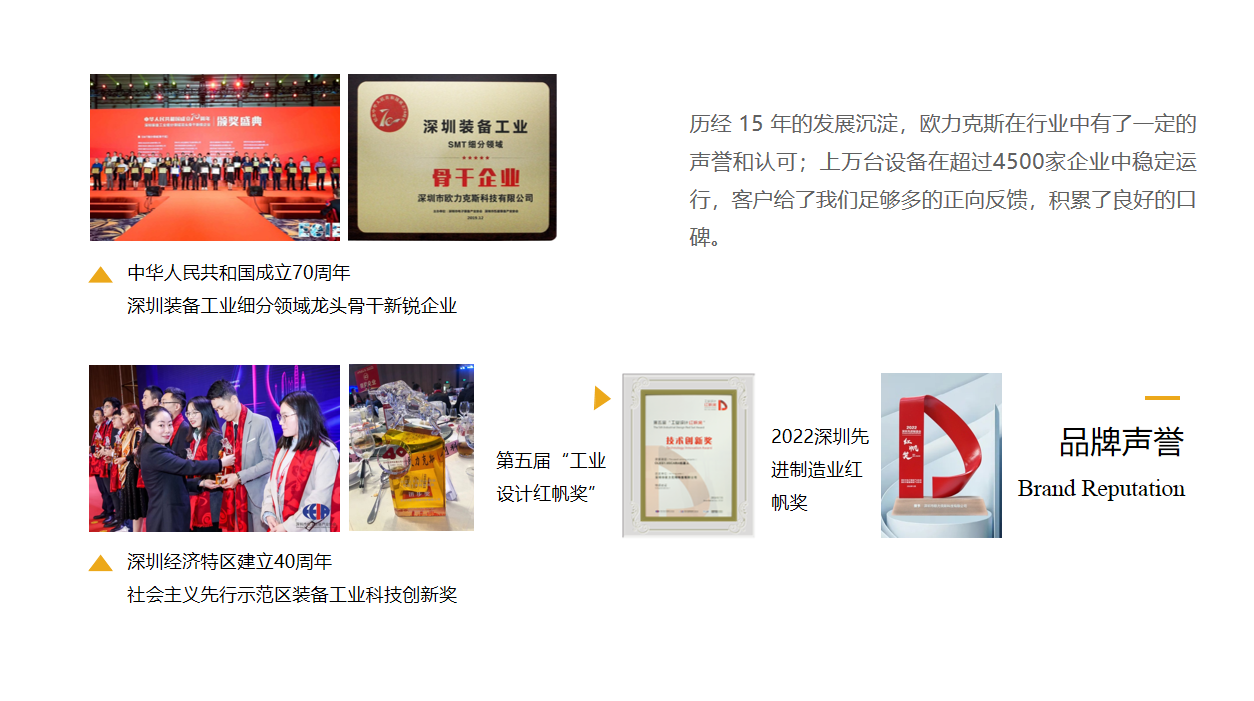 深圳市歐力克斯科技有限公司成立于2011年,現(xiàn)已成為業(yè)界領先的智慧工廠整線或專機智能化設備解決方案提供商,是通過了ISO9001:2015質量管理體系認證的國家高新技術企業(yè)和專精特新企業(yè)。業(yè)務涵蓋點膠智能裝備、灌膠智能裝備、焊錫智能裝備、鎖螺絲智能裝備、檢測智能裝備、大型自動化生產線等六項領域,是點膠智能裝備的國內知名品牌。