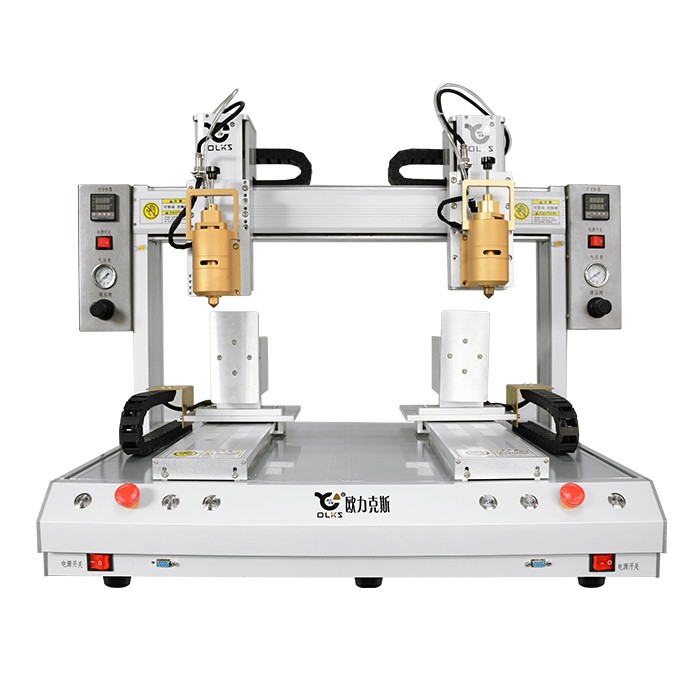 1、雙頭雙工位熱熔膠點膠機,高效率自動點膠,精美點膠工藝
