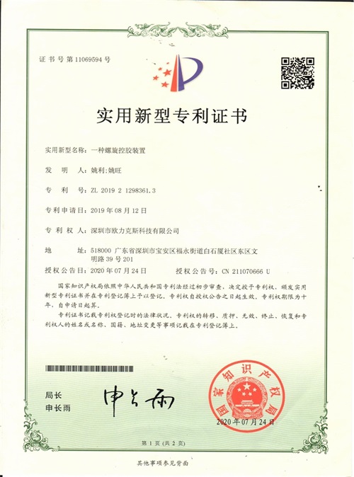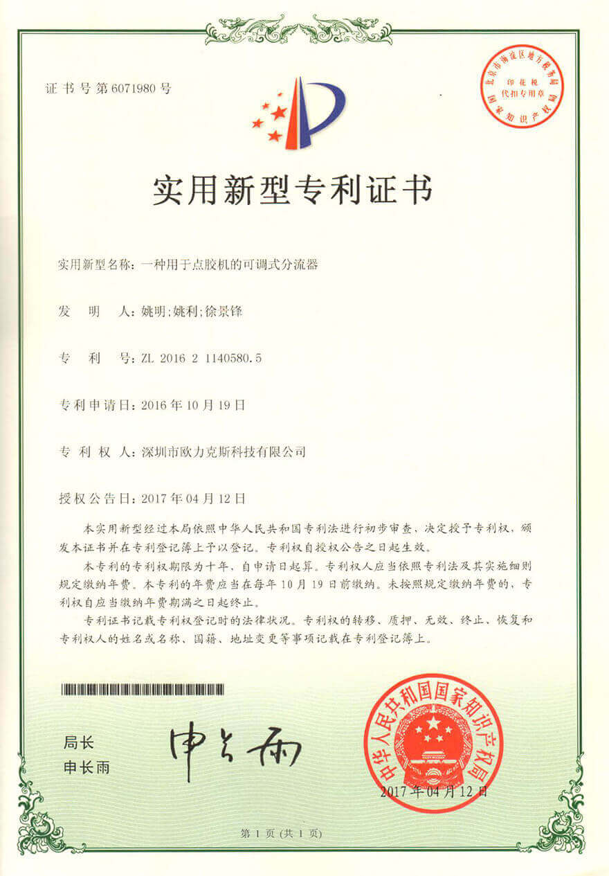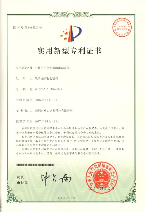 AB雙液全自動配比灌膠機系統V2.0登記證書